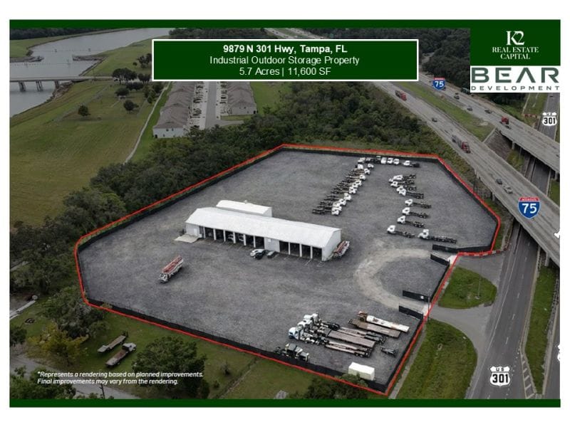 ACQUISITION: K2 Real Estate Capital, in partnership with Bear Development Holdings, acquired a 5.7-acre IOS property at 9879 N 301 Hwy in Tampa, FL for $8.7M, featuring a fully leased 11,600 SF shop. Prior to closing, K2 executed a new lease with Opifex Synergy. Devin Beeler and Robbie Lober sourced the opportunity and securing the tenant. Jason Lundy at JLL advised on the financing, supporting the launch of K2-Bear’s new IOS venture.