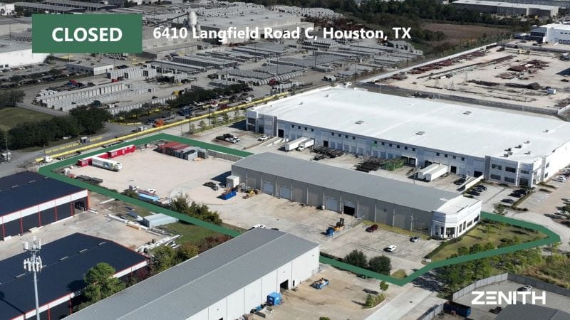 ACQUISITION: Zenith acquired two Class A IOS and manufacturing properties in Houston, featuring 151K SF of buildings across approximately five acres with heavy power supply and crane-served capabilities. The transaction was supported by Charlie Strauss and Lance Young of JLL; for future Houston acquisitions, reach out to Vinh Thai or Peter Cannon, and for leasing inquiries contact Travis Land, SIOR (Houston) or Alex Guider (all other markets).