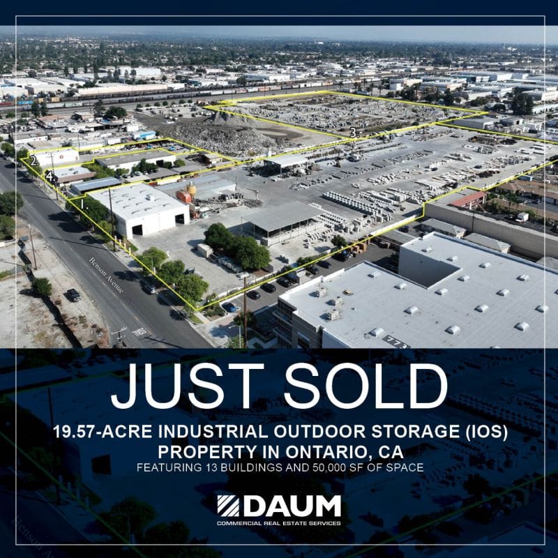 ACQUISITION: DAUM Commercial closed the sale of a 19.57-acre IOS property in Ontario, CA, featuring 13 buildings and 50,000 SF of space in the heart of the Inland Empire. The buyer, an Austin-based owner/operator focused on truck terminals, capitalized on the site’s connectivity and functionality, underscoring the continued resilience of the Inland Empire industrial market.