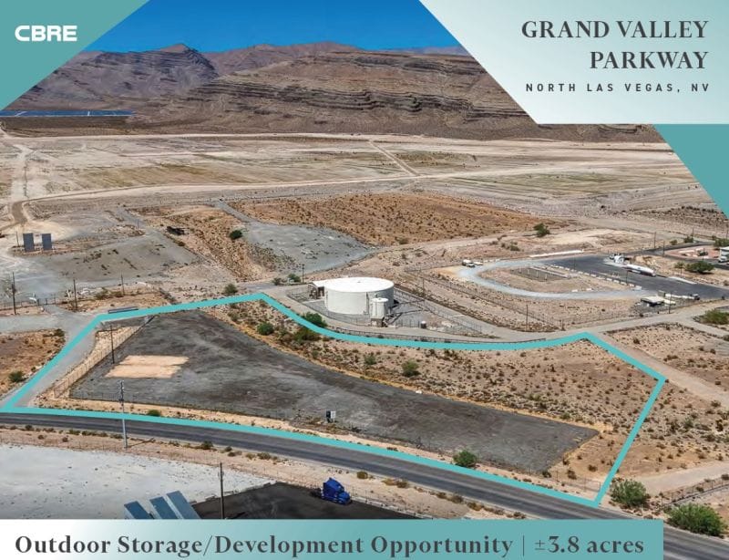 ACQUISITION: A ±3.8-acre land opportunity at Grand Valley Parkway in Apex, North Las Vegas has closed. The site offers outdoor storage potential within one of Southern Nevada’s newest industrial submarkets. Luke Ramous and CBRE facilitated this transaction.