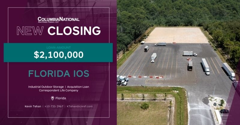 FINANCING: Columbia National Real Estate Finance arranged a $2.1M acquisition loan for an IOS property financed through a correspondent life company. The transaction was led by Kevin Tehan, Managing Director & Partner, supporting the buyer’s acquisition of the IOS asset.