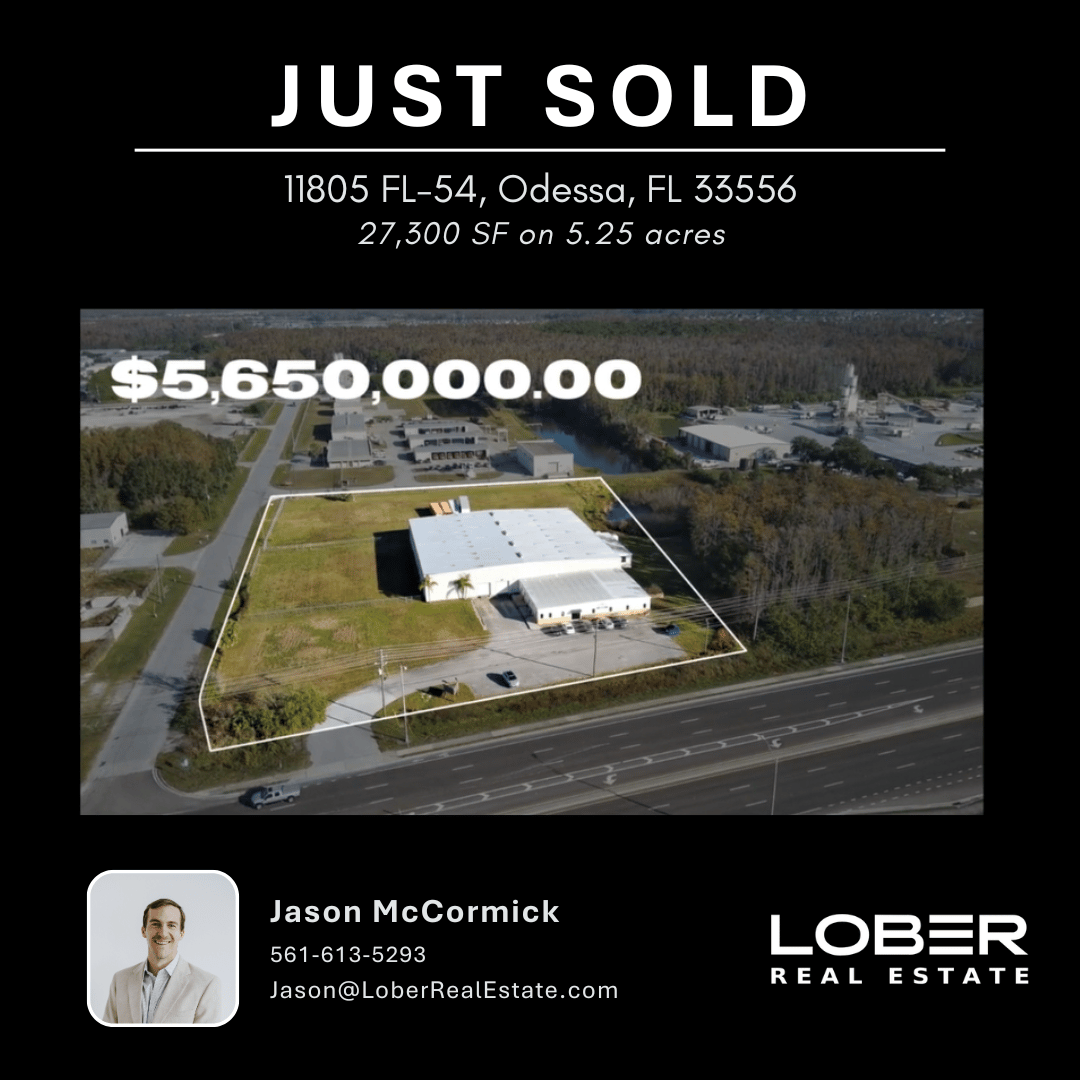 ACQUISITION: Jason McCormick at Lober Real Estate recently facilitated the sale at 11805 State Road 54, Odessa, FL for $5,650,000. The property features 27,300 SF on 5.25 acres. This deal took over two years to develop, following relationship and trust-building between Jason and the seller. For deal specifics or to talk deals in Central/West Florida, reach out to Jason.