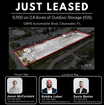 LEASED: Lober Real Estate closed a new IOS lease in Clearwater, FL, securing 5,900 SF on 2.4 acres at 12895 Automobile Blvd. Jason McCormick represented the tenant, while Robbie Lober and Devin Beeler represented the landlord. The deal highlights strong teamwork and the continued demand for Industrial Outdoor Storage space across Central and West Florida.