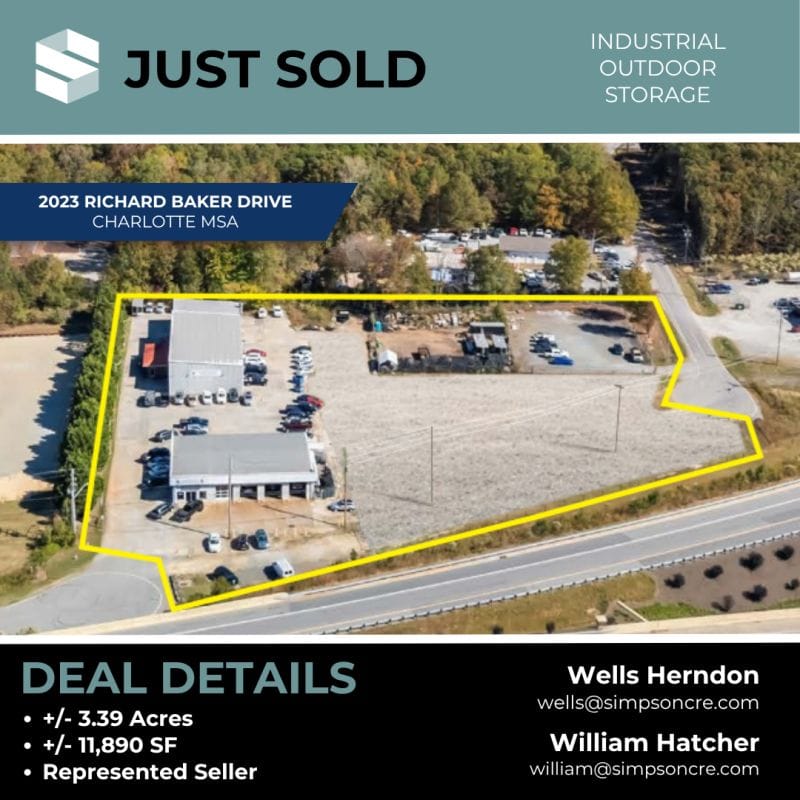 ACQUISITION: Simpson Commercial Real Estate closed the sale of an IOS property at 2023 Richard Baker Drive in the Charlotte MSA, representing the seller in the transaction. The site includes approximately 11,890 SF of industrial space paired with ±3.39 acres of secure outdoor storage. With the sale completed, the team is now bringing the property to market for lease. Reach out to William Hatcher and Wells Herndon for more information.