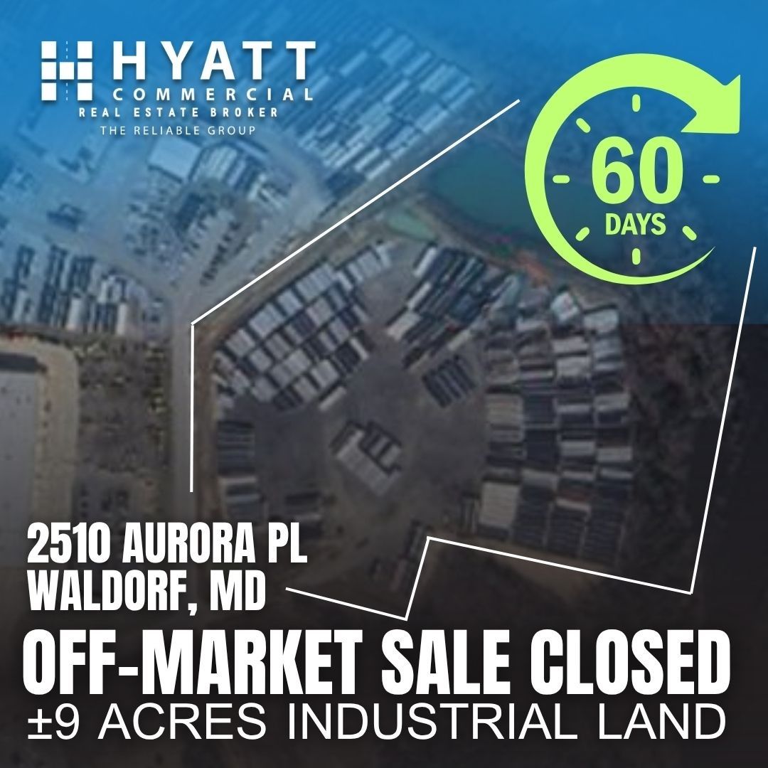 ACQUISITION: Hyatt Commercial brokered the off-market sale of 2510 Aurora Place in Waldorf, MD — a ±9-acre industrial outdoor storage property ground-leased to Williams Scotsman Inc. — in an all-cash deal that closed in 60 days, with Acton Lane Industrial Partnership selling to 2510 Aurora Partners, LLC, highlighting strong IOS investor demand in Southern Maryland.