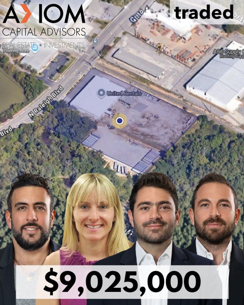 ACQUISITION: Axiom Capital Advisors arranged the $9.025M sale of 2010 Raleigh Boulevard in Raleigh, NC — a 34,000-SF industrial property on 4.86 acres — with Jennifer Stein of Jennifer Stein Real Estate Inc. representing the buyer alongside Eli Sasson Bril and José Sasson of Axiom Capital Advisors.