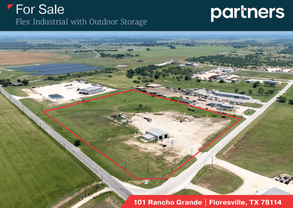A ±14.40-acre IOS property located one mile north of US Highway 181 in Floresville, offering easy access to San Antonio’s southern industrial corridor. The site includes a ±3,500 SF warehouse with two drive-through bays, a fenced and stabilized yard, and sits outside city limits, providing flexible use potential. Built in 2013, the property is well-suited for contractors, equipment storage, or service operations needing large yard space with on-site improvements.