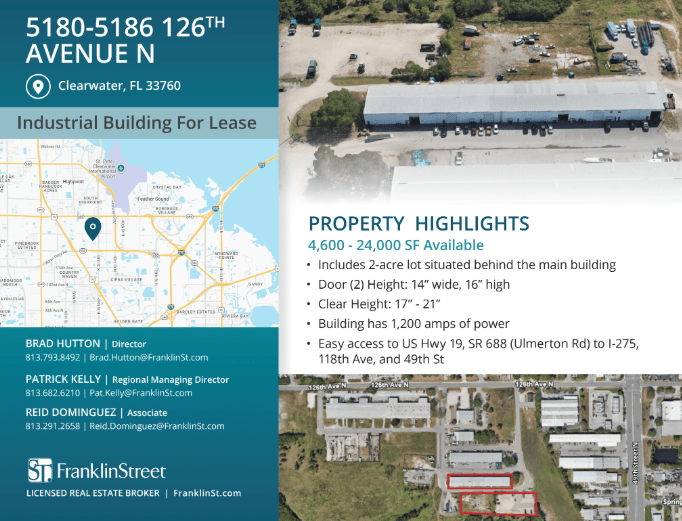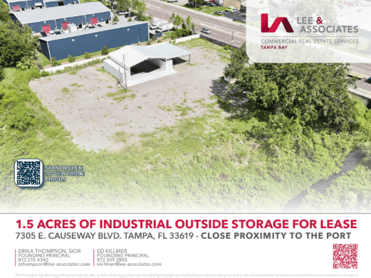 About Lee & Associates Tampa Bay: Lee & Associates Tampa Bay is a broker-owned commercial real estate firm with award-winning, diverse professionals who deliver transparent, client-focused brokerage across industrial, office, retail and land assets throughout Florida. Learn more about Lee & Associates Tampa Bay