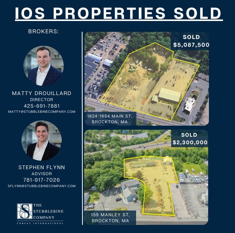 ACQUISITION: Stephen Flynn and Matty Drouillard from The Stubblebine Company announced the successful completion of two industrial outdoor storage transactions in Brockton, which highlight the continued strength of the IOS market. Reach out to Stephen and Matty for more information!