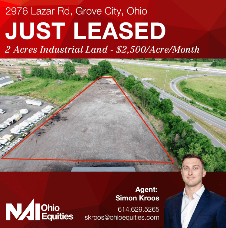 LEASED: 2976 Lazar Rd in Grove City, OH was just leased! The property featured 2 AC of improved outdoor storage space. Simon Kroos at NAI Ohio Equities represented the landlord in the transaction and the site was leased to a managed truck parking user.